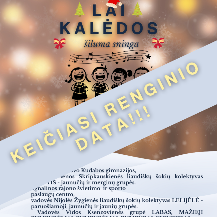 Dėl didelio mokinių sergamumo ir mokykloje pratęsto nuotolinio mokymosi, renginys keliamas į SAUSIO mėnesį. Renginio data bus patikslinta vėliau. Atsiprašome už nepatogumus. ❄️