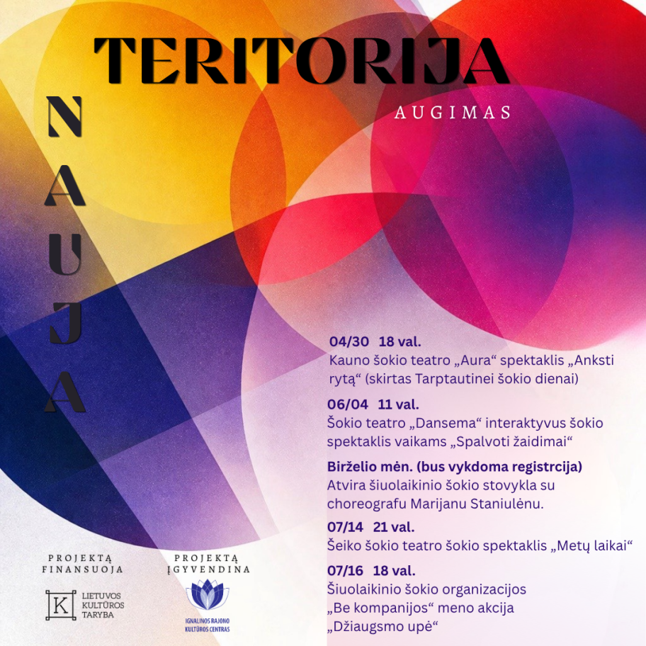 Projektas „Nauja teritorija. Augimas“ kviečia Ignalinos krašto gyventojus atrasti šiuolaikinį šokį iš naujo – ne tik stebint, bet ir patiriant, kuriant bei augant kartu.